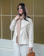 جنس شلوار لینن و جنس کت ترکیب قلاب بافی ونکلیف و لینن
