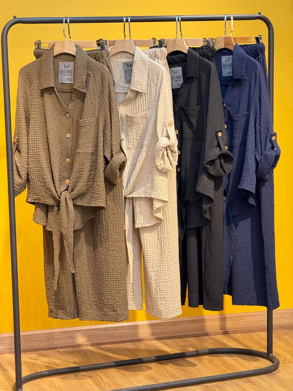 جنس شلوار لینن و جنس کت ترکیب قلاب بافی ونکلیف و لینن