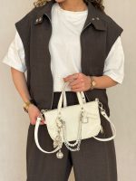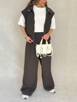 جنس شلوار لینن و جنس کت ترکیب قلاب بافی ونکلیف و لینن