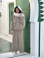 جنس شلوار لینن و جنس کت ترکیب قلاب بافی ونکلیف و لینن