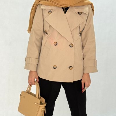 🍁جنسش کتان زارا هستش، پارچش ضد ابه ، هم جلو بازش شیکه هم جلو بستش، پشت کار یه ژیله با نمک داره که با دکمه هایی که روش کار شده خاص ترشم کرده ………